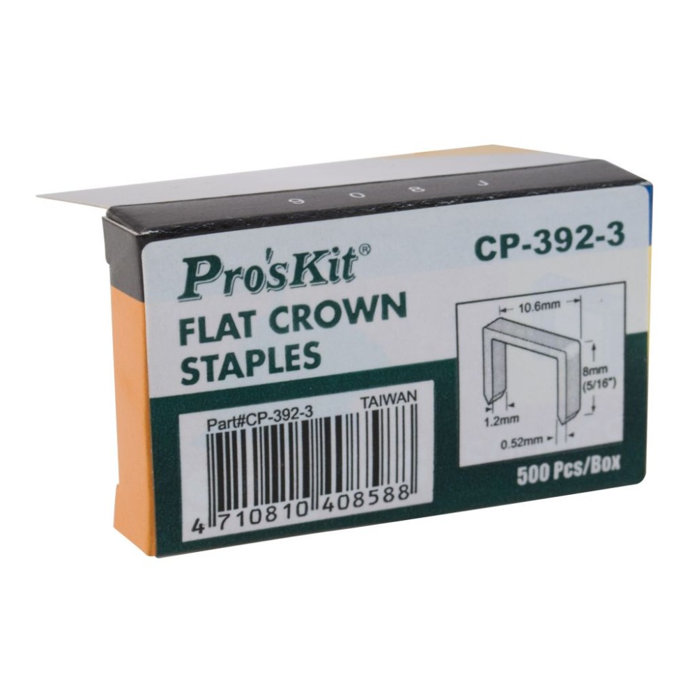 Скобы CP-392-3 разработаны специально для универсального степлера для прокладки кабеля Pro'sKit CP-392. Эти скобы подходят как для плоских кабелей, так и для круглых проводов.