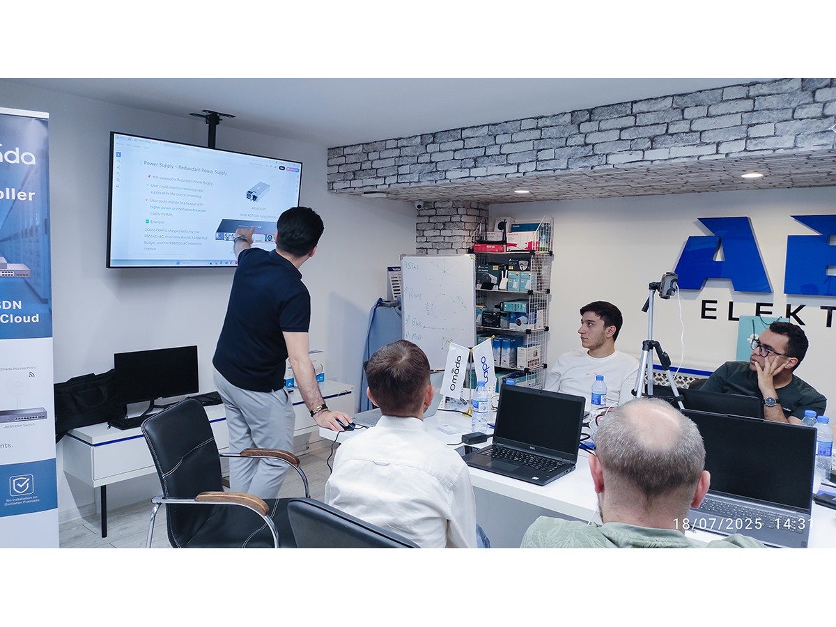 В компании AEM Elektron прошло первое занятие курса по программе OCNA Routing and Switching от бренда Omada — это авторская сертификация, аналогичная международному стандарту CCNA от Cisco, ориентированная на обучение специалистов работе с сетевыми решениями Omada и базовым принципам построения современных IP-сетей.